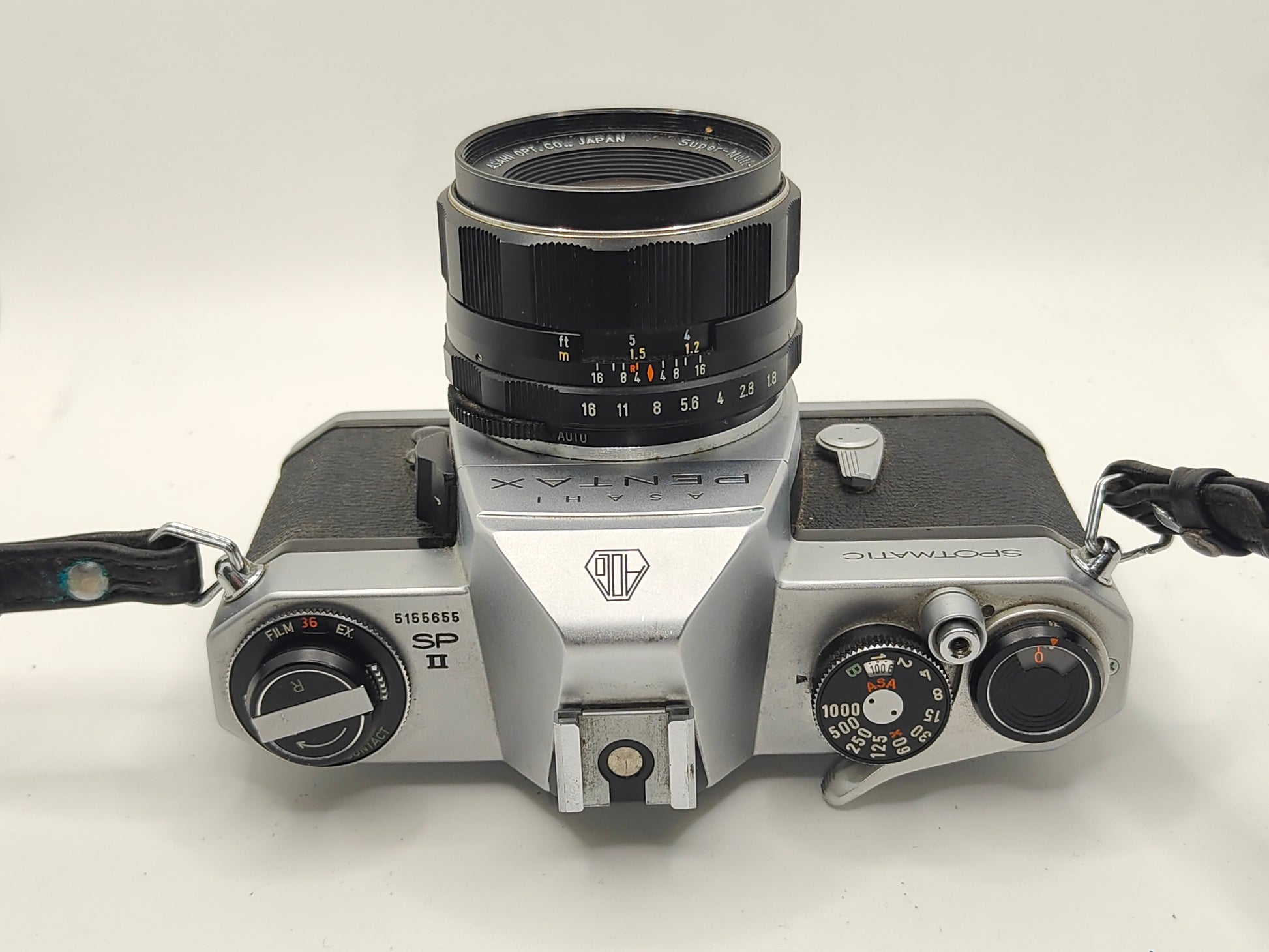 This example comes with a large aperture f1.8 Pentax Takumar 55mm lens and the original leather case / strap.